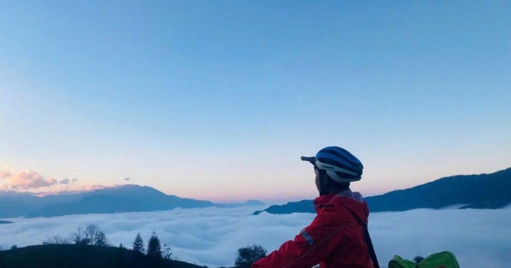 Đạp xe dọc tuyến biên giới, đoàn ghé thăm đền Mẫu Trịnh Tường, cột mốc 95 và những đoạn đường tuần biên vắng lặng, nơi núi non trùng điệp trải dài, một bên là Việt Nam, một bên là Trung Quốc. Không còi xe, không ồn ào, chỉ còn gió núi, mây trôi và nhịp bánh xe đều đặn trên cung đường biên cương.